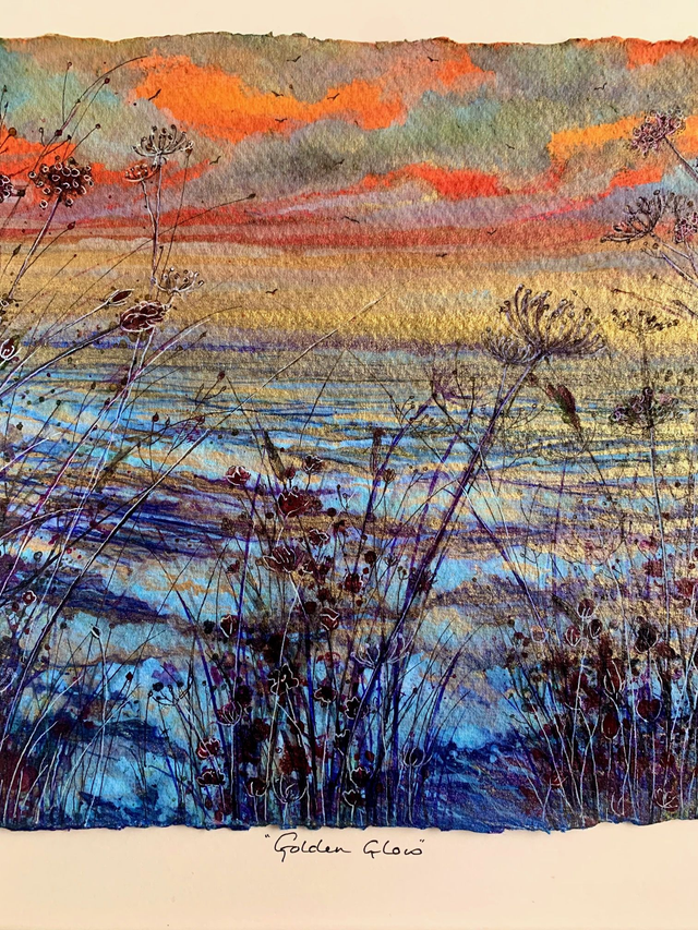 A mesmerizing sunset with liquid gold tones, it adds a touch of warmth to any room.