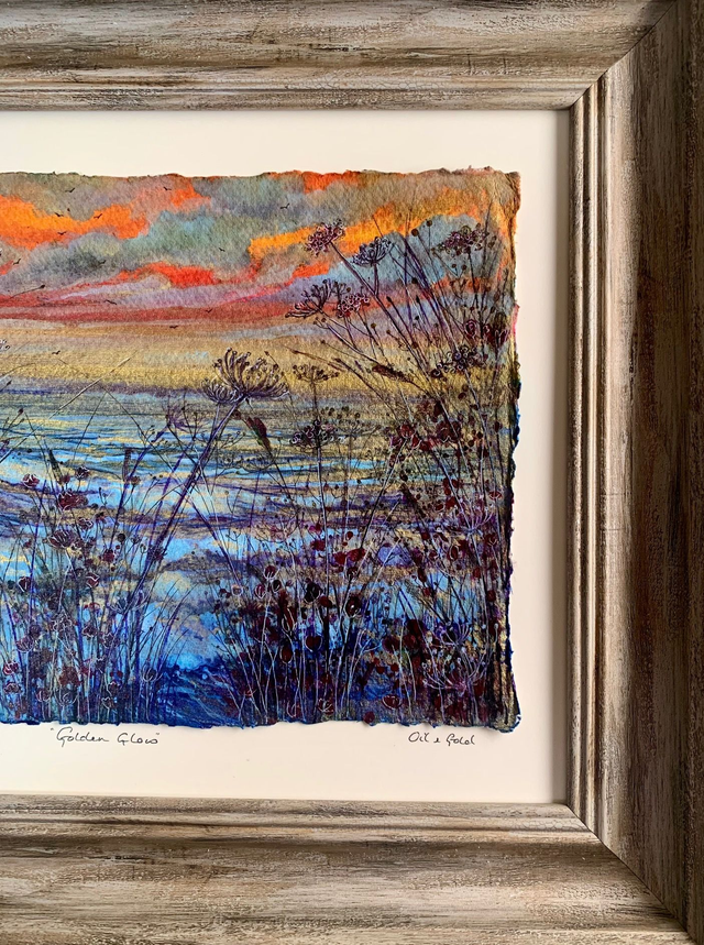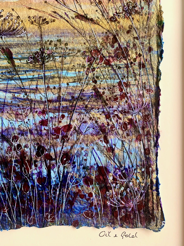 Oil, Ink and liquid gold on rough edge 390gsm handmade Khadi paper.